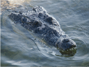 “Maybe it’s the fish… throw the bag at him.” You have just enough time to throw the bag with your right hand. But he doesn’t stop. He speeds up. In a flash of brown water, he opens wide his maw. He grabs your right hand… and crushes it…. He spins you around in the water, your hand between his jaws, feet tangled in your own net. He’s holding you down under water and pulling you out away from the bank. You don’t think “fight!” … you just FIGHT!! You fight with all you have… underwater, nearly blind for all the mud stirred up. Left fist and knees pounding and pounding this beast… but it does Nothing. Nothing phases this unstoppable monster. Your fist still crushed within his mouth, he is shaking you back and forth like a rag doll… pulling you deeper and deeper into the lagoon. You can’t think anymore…. No more air… .More than you want to get away, you want air! But you don’t breathe in. With your last breath, instead, you breathe out… you cry…What?! ……..What do you say with the last breath in your lungs !!??