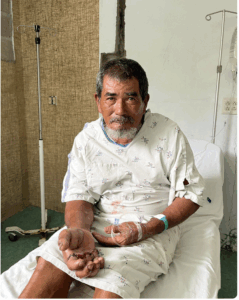 I first met Don José in the Emergency Room at Loma de Luz. I think that was the third day since his near-death encounter with the crocodile. After God moved the monster to release him (more on that in a minute), barely conscious, he had pulled himself free of the net one handed, then made his way to the edge of the lagoon, crawled elbows and knees up the bank, then walked to the nearest road. Neighbors took him to his family. His family took him to the Public Health Hospital in Tela… where, after waiting half a day, they closed some of the skin with a few huge silk sutures, did nothing for the many broken bones and torn tendons, bandaged his hand and sent him to the next Public Hospital up the line, Hospital Mario Catarino Rivas in San Pedro Sula, the largest Public Health Hospital in the country.